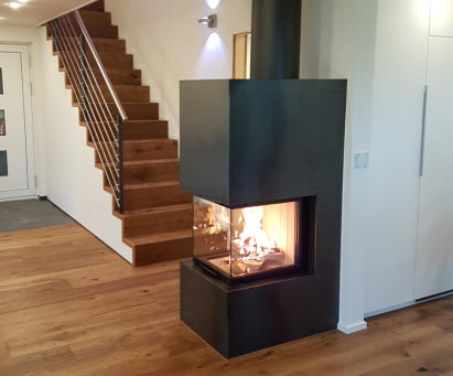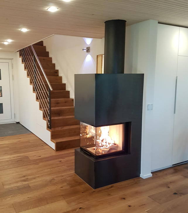Cheminées, Kachelöfen und Cheminéeöfen bestückt.