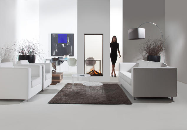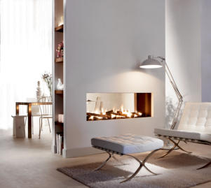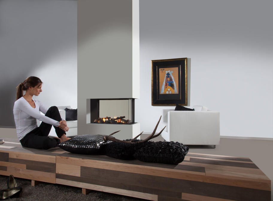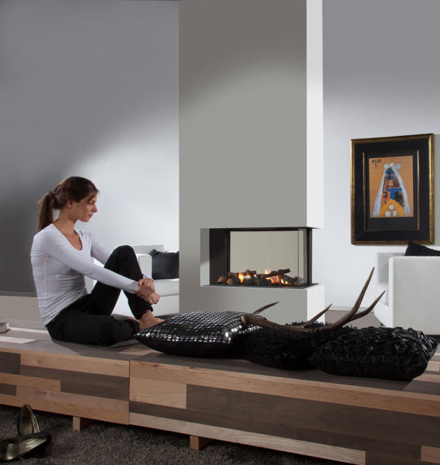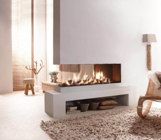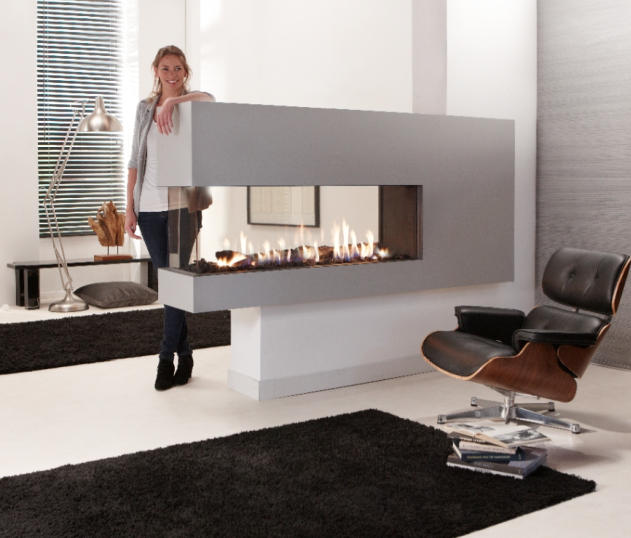 Die drei seitigen Feuerstellen sind speziell geeignet um Räume